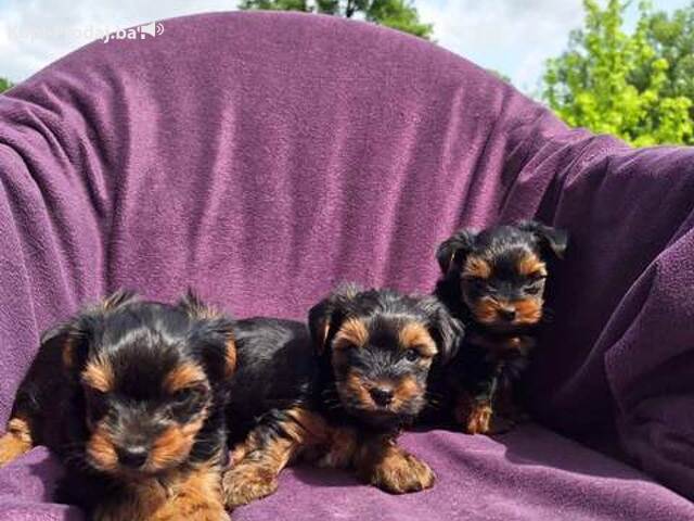 Odgajivačnica Anini's dogs kennel FCI 7838 prodaje štence Jorkširskog terijera, oštenjeni 16.03.2024. U leglu su 3 mužjaka i 3 ženke, kompaktne gradje, dobro odlakani, sa rodovnicima i vet dokumentacijom.